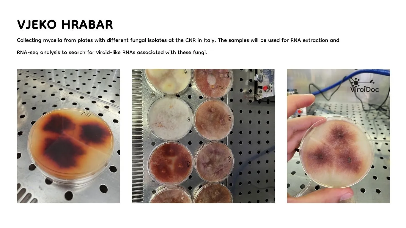 Also, at CNR, Vjeko Hrabar is exploring the diversity of viroid-like RNAs in fungi. His research investigates whether naturally occurring RNA agents within fungi could offer new insights into biological control strategies, potentially opening alternative avenues to protect crops from fungal pathogens.