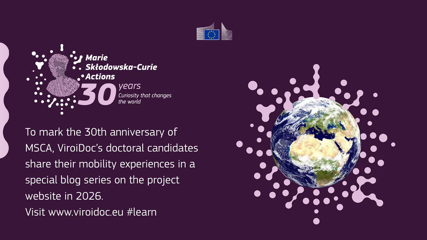 To mark the 30th anniversary of the MSCA, in February ViroiDoc has launched a blog series in which doctoral candidates share their international research experiences. These stories provide insight into the scientific, cultural, and personal dimensions of mobility, highlighting the global journeys of the fellows and their perspectives on research and collaboration.