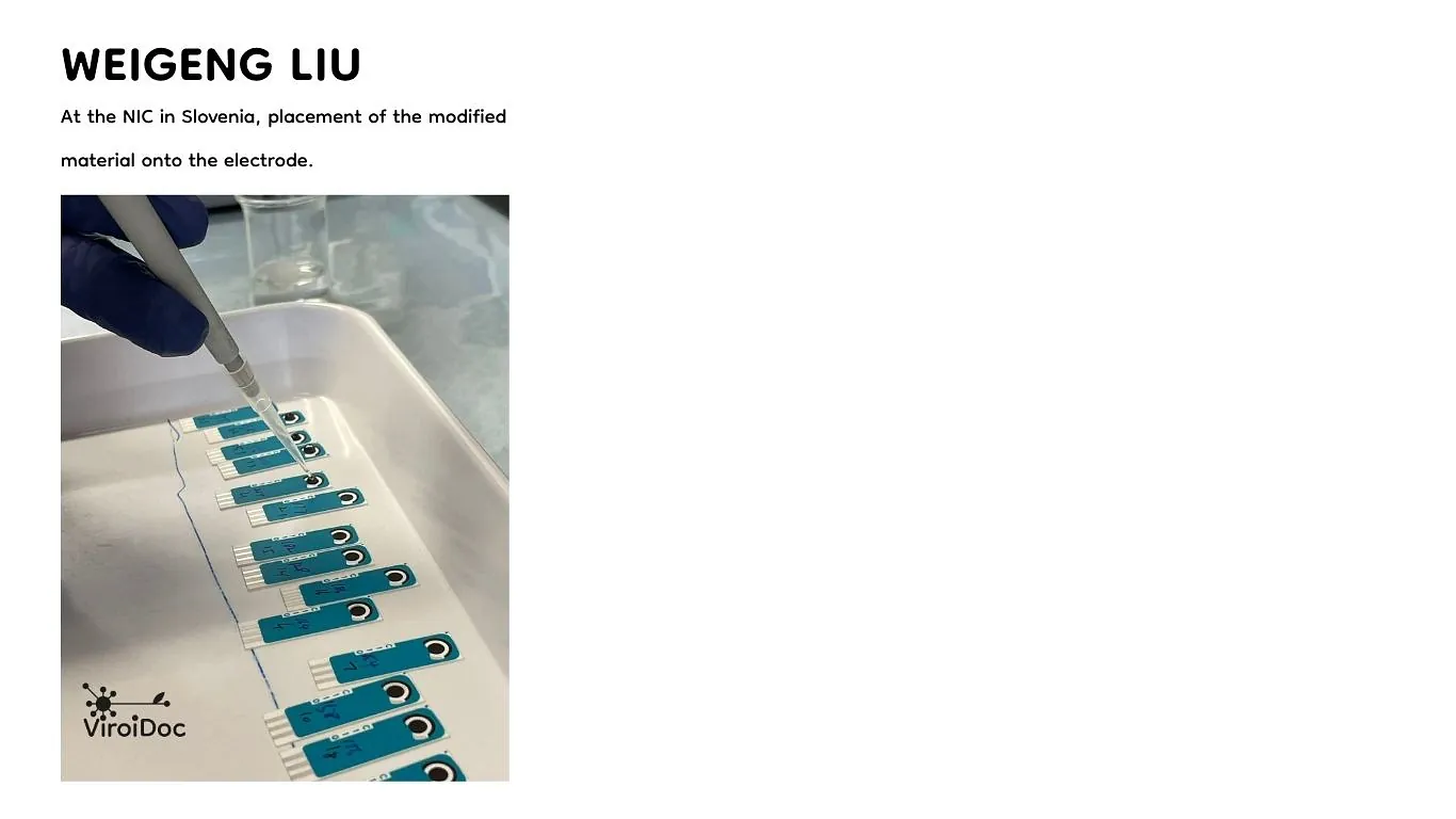 Weigeng Liu specialises in electrochemical biosensing technologies at the NIC in Slovenia. His research focuses on developing electrochemical sensors to detect viroids, which are small RNA pathogens that pose a significant threat to global agriculture. By designing rapid and highly sensitive detection platforms, he is helping to improve plant disease monitoring and develop more sustainable crop management strategies.