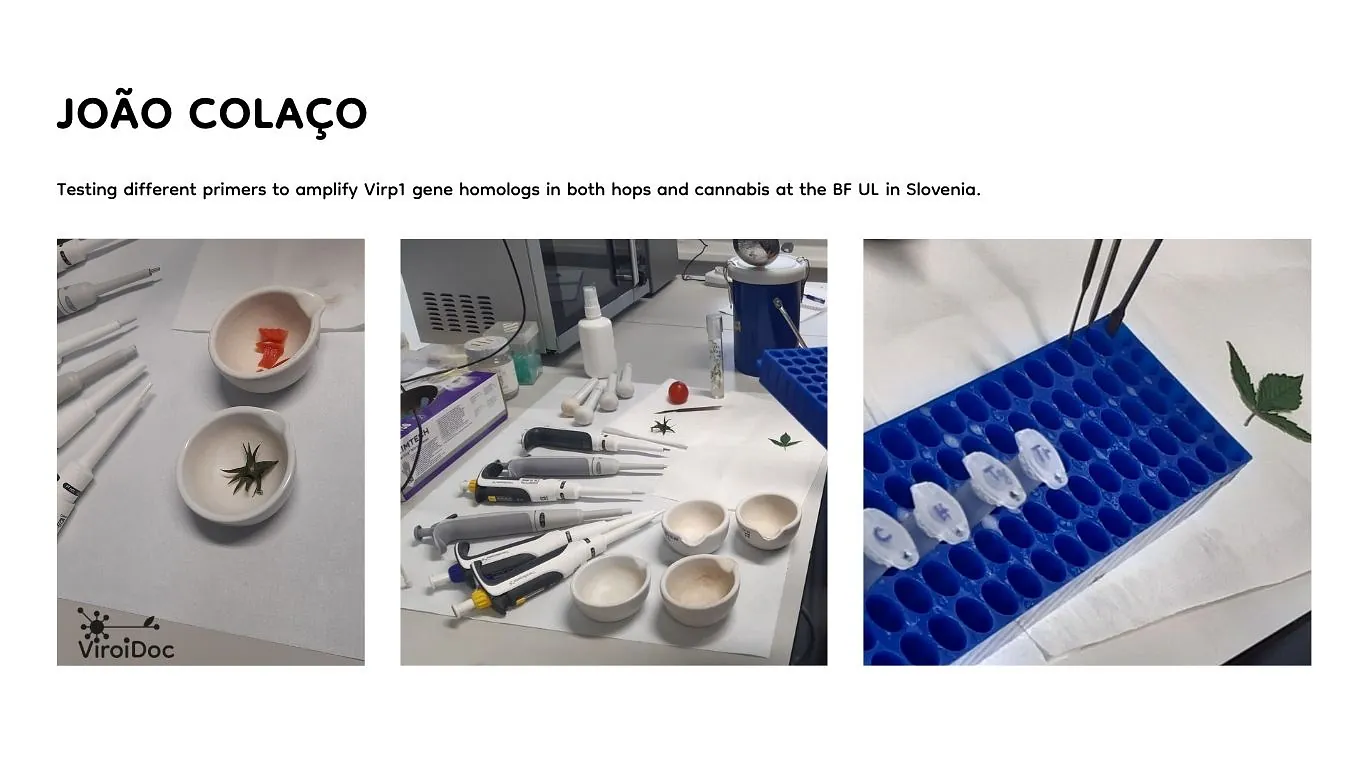 At the Biotechnical Faculty of the University of Ljubljana, João Colaço is analysing publicly available datasets to better understand the prevalence of viroid infections across plant species, including potato, petunia, and coconut. His work also involves experimental validation, where he and the research team are testing primers to amplify Virp1 gene homologs in hops and cannabis.